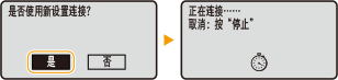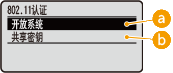当连接至无线局域网时,如果在无线路由器上设置了共享密钥认证,则本机会遇到认证错误。如果发生这种情况,本机会自动将设置更改为 <共享密钥> 并重试连接。