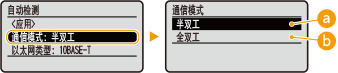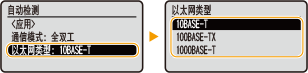 选择以太网类型 ![]() ![]() ![]() 当 <通信模式> 设置为 <半双工> 时,无法选择 <1000BASE-T>。