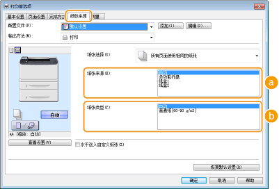 将根据指定的打印纸张尺寸和类型以及本机中配置的设置自动选择纸张来源。