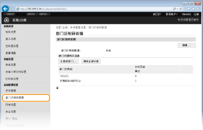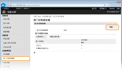开启/关闭部门识别码管理。部门识别码管理打开/关闭登录到本机