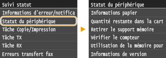 Statut des tâches de copie/d'impression/d'envoi/de réception