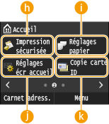 <Réglages écr accueil>Permet de changer l'ordre d'affichage des boutons de l'écran Accueil. Personnalisation de l'écran Accueil