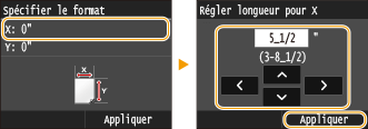 / et / pour déplacer le curseur d'un chiffre à un autre et entrer des nombres entiers ou des fractions, puis appuyez sur <Appliquer>.![]() |