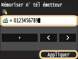Saisissez le numéro de fax au moyen des touches numériques, puis appuyez sur <Appliquer>.