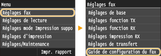 Sélectionnez <Réglages fax> <Guide de configuration du fax>.