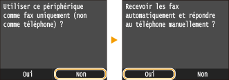 Appuyez sur <Oui> ou <Non> pour sélectionner le mode de réception.