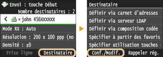 Sélectionnez <Destinataire>  <Conf./Modif.>.