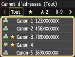 Seules des destinataires dans le carnet d'adresses peuvent être spécifiés comme adresses de stockage. Pour utiliser le carnet d'adresses, le destinataire doit être préalablement enregistré. Enregistrement dans le carnet d'adresses