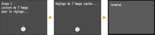 L'image de réglage est numérisée et le réglage commence. Le réglage se termine environ 8 secondes plus tard.
