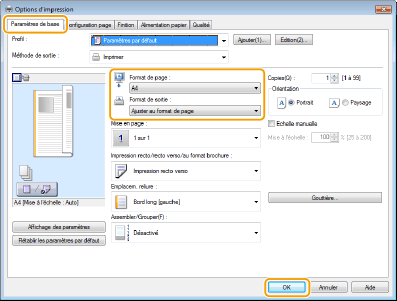 Les réglages d'agrandissement/de réduction sur certaines applications ont la priorité sur ceux du pilote d'imprimante.