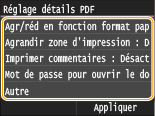 Vous pouvez imprimer des fichiers PDF protégés par mot de passe en saisissant le mot de passe requis pour les ouvrir.