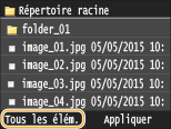 ![]() ![]() Si vous avez sélectionné un fichier avant d'appuyer sur <Tous les élém.>, vous ne pouvez sélectionner que des fichiers du même format.