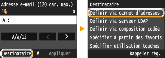 Vous devez enregistrer les destinataires dans le carnet d'adresses pour tirer parti de cette fonction. Enregistrement dans le carnet d'adresses