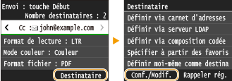 / pour consulter, un à un, les destinataires que vous avez spécifiés. Affichez le destinataire à supprimer et appuyez sur . |