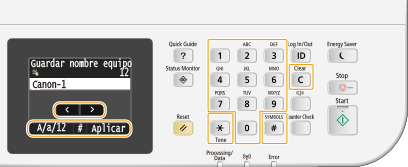 aparezca en la pantalla, podrá conectar un teclado al puerto USB para dispositivos USB de la Parte delantera e introducir el texto con el teclado. Cuando emplee un teclado, podrá seguir utilizando el teclado numérico.