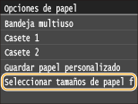Los tamaños de papel que no estén marcados podrán visualizarse pulsando <Otros tamaños> en la pantalla para seleccionar la opción de tamaño del papel.