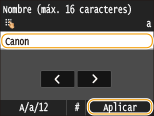 Introduzca el nombre utilizando las teclas numéricas y pulse <Aplicar>.