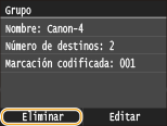 Seleccione el destino que desee eliminar del grupo y pulse <Borr. de grupo>