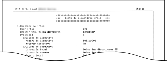 Puede consultar la lista de nombres de directivas y las opciones de IPSec registradas en el equipo imprimiendo una Lista de directivas IPSec.