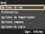 Todas las opciones sobre la red se muestran con descripciones breves. Las opciones predeterminadas aparecen marcadas con una cruz (