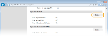 Seleccione la casilla de verificación para obtener información sobre el equipo desde un ordenador a través de WSD. Esta casilla de verificación se selecciona automáticamente cuando se marca la casilla de verificación [Usar impresión WSD]. [Usar lectura WSD]