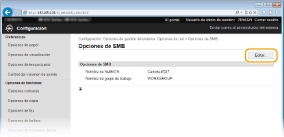 Bloque de mensajes del servidor (SMB) es un protocolo para compartir recursos, como archivos e impresoras, con más de un dispositivo en una red. El equipo utiliza SMB para guardar los documentos leídos en una carpeta compartida. En función de la red, es posible que deba configurar el nombre de NetBIOS y el nombre del grupo de trabajo.