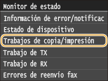 ![]() <Est. trabajos copia/impresión>Muestra la lista de documentos que se están procesando, copiando o a la espera de procesarse.