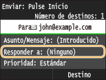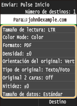 Para enviar e-mails directamente desde el equipo, deberá completar los preparativos de antemano, incluida la especificación de las opciones del servidor de correo. Configuración de opciones de lectura (envío por e-mail, envío y recepción de I-Faxes)