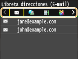 La libreta de direcciones le permite especificar un destino seleccionándolo en la lista de destinos registrados o buscándolo por nombre en el caso de los destinos con nombres de destinatario.