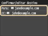Puede seleccionar un destino entre los tres últimos destinos utilizados. Cuando se especifica un destino utilizado anteriormente, el equipo también configura las mismas opciones de lectura utilizadas la última vez que se enviaron documentos a dicho destino como, por ejemplo, la densidad.