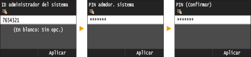 ![]() En el modelo MF419dw, el ID y el PIN del administrador del sistema son de forma predeterminada "7654321". Se recomienda cambiar este valor para una mayor seguridad.