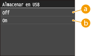 Prohíbe que los datos se almacenen en un dispositivo de memoria USB. Los datos escaneados no pueden almacenarse en el dispositivo de memoria USB.