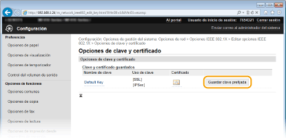 Haga clic en [Guardar clave prefijada] en la parte derecha del par de claves que desee utilizar para la autenticación del cliente.