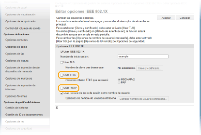 Seleccione la casilla de verificación [Usar TTLS] o [Usar PEAP].