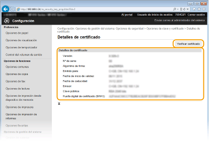 Compruebe los detalles del certificado y haga clic en [Verificar certificado].