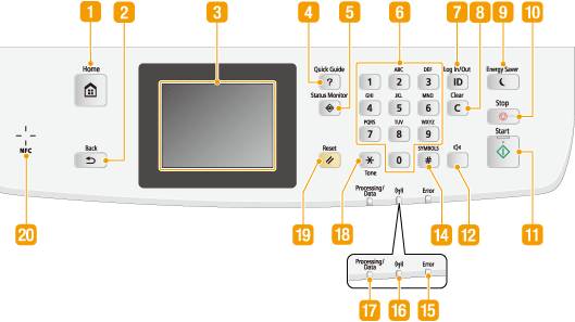 O painel de operação exibido acima pertence a MF416dw. As funções disponíveis variam dependendo do modelo