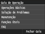 Pressione para visualizar o guia de operações e as causas de erros e suas soluções.