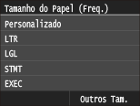 Se a tela mostrada acima não for exibida quando o papel for carregadoSe você carrega sempre o mesmo papel na bandeja multiuso, você pode ignorar as operações de configuração de papel registrando o tamanho e o tipo de papel como a configuração padrão. Quando a configuração padrão é registrada, entretanto, a tela mostrada acima não é exibida. Para visualizar a tela, selecione <Especificar ao Colocar Papel> (Registrando as configurações de papel padrão para a bandeja multiuso).