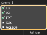 Você pode garantir que somente tamanhos de papel usados com frequência sejam mostrados na tela para seleção da configuração de tamanho de papel.