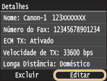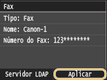 <Configurações de Fax>. No entanto, as configurações feitas no <Catálogo> são ativadas para as configurações detalhadas dos destinatários registrados no Catálogo de endereços. |