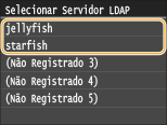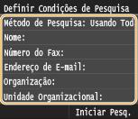 O nome de usuário, número de fax ou endereço de e-mail do usuário selecionado que estão registrados no servidor LDAP são inseridos no campo de destino.
