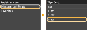 É possível combinar vários destinos em grupos. Você pode registrar até 299 destinos (100 destinos para e-mails) para um grupo. Depois que um grupo é registrado, os destinos podem ser adicionais ou excluídos dele.
