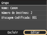 Depois de registrar os destinos em um grupo, você pode alterar o conteúdo da informação registrada. Por exemplo, você pode alterar o nome do grupo ou o número de discagem codificada, adicionar/remover destinos, etc.
