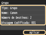 Repita as etapas 7 a 9 até que tenha registrado todos os destinos desejados e depois toque em <Aplicar>.