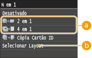 Usar <2 em 1>/<4 em 1> reduz a razão de cópia automaticamente (a razão de cópia é exibida na tela). Você pode aumentar ou reduzir a razão de cópia antes de pressionar