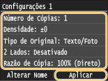 Quando você tiver rechamado a combinação de configurações, também poderá alterar as configurações de cópia conforme necessário.