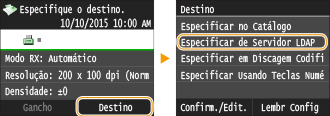 Se o seu escritório tem um servidor LDAP instalado, você pode especificar um destino utilizando as informações de usuário no servidor. Acesse o servidor LDAP através da máquina para procurar as informações de usuário apropriadas e especificá-las como destino.