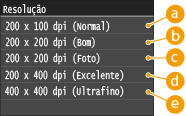 Você pode selecionar a resolução adequada para seu tipo de documento. Quanto maior a resolução, mais clara a imagem de torna, mas é preciso mais tempo para enviar.