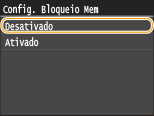 Para imprimir documentos recebidos na memória, defina <Configurações de Bloqueio de Memória> para <Desativado>. Todos os documentos na memória serão impressos.