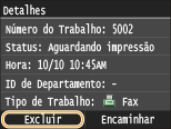 Você pode verificar informações detalhadas sobre os documentos armazenados na memória, incluindo números de remetente para faxes e o número de páginas enviadas, e depois excluir os documentos desnecessários.
